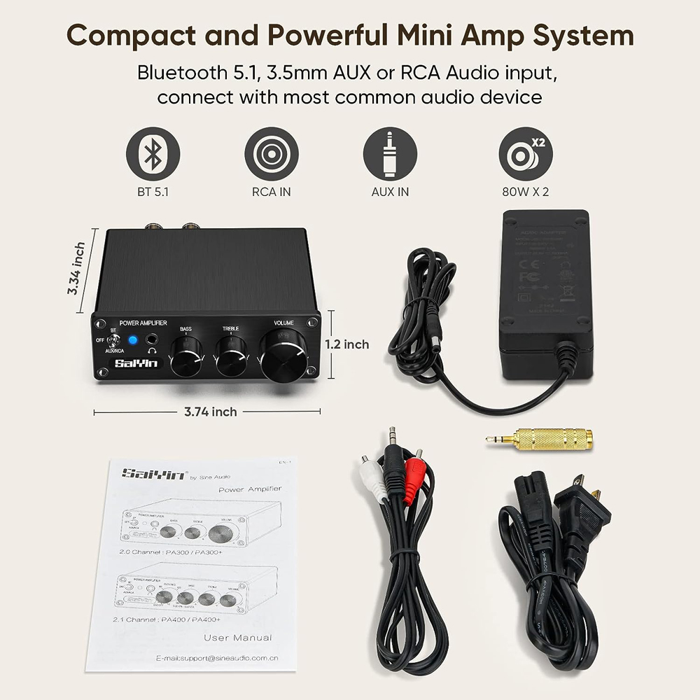 Easy To Set UP: Supports Bluetooth, AUX and RCA inputs to drive most home passive/powered speakers, powered subwoofer, headphones. Treble/bass and master volume knob controls for richer, clearer sound
