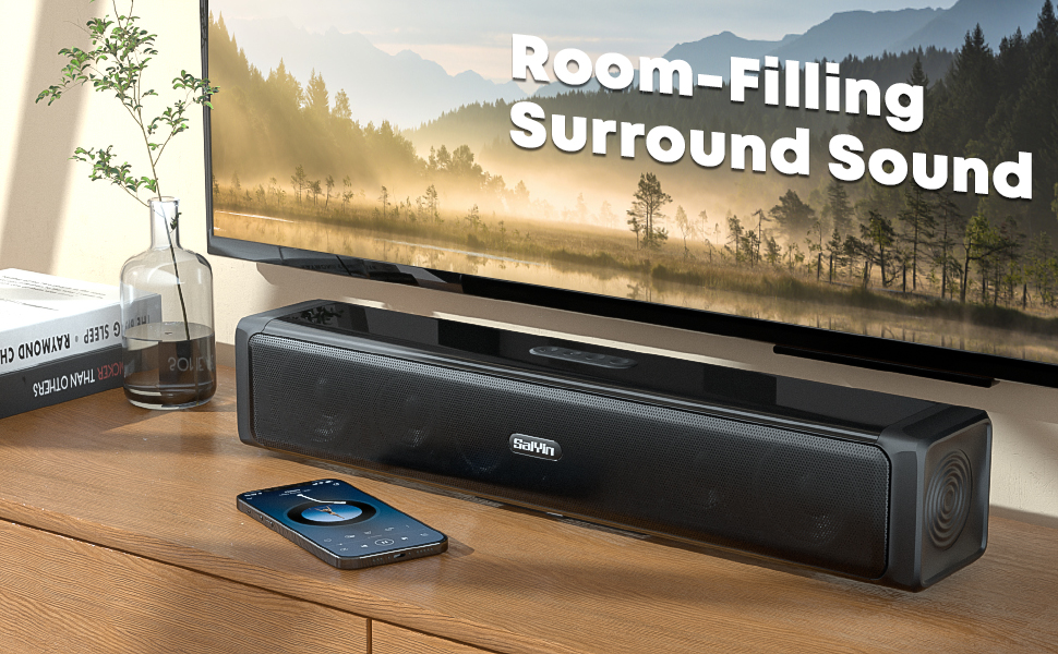 Saiyin Sound Bar,Soundbar for TV with 4 Powerful Speakers,Surround Sound System for TV,17 inch Soundbar with Bluetooth/HDMI-ARC/Optical/AUX,Wall Mountable